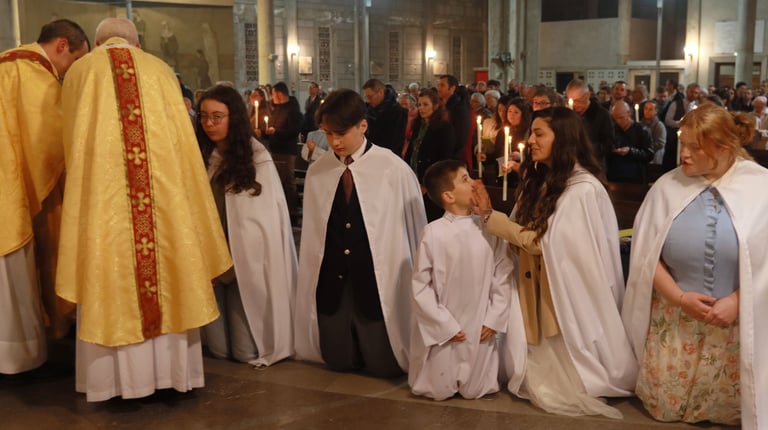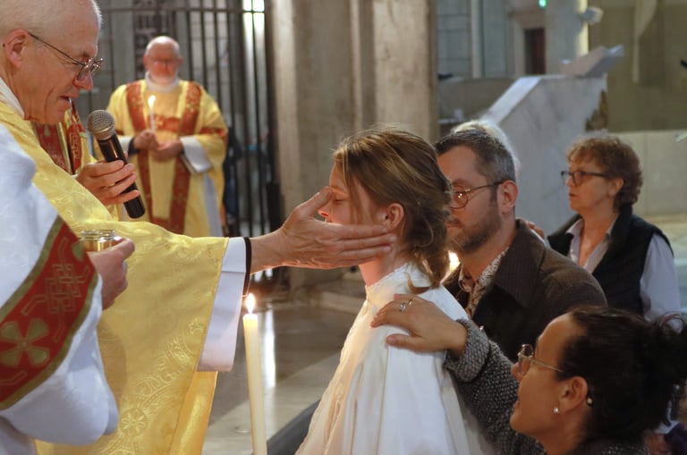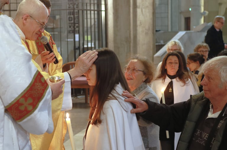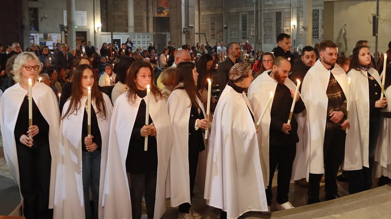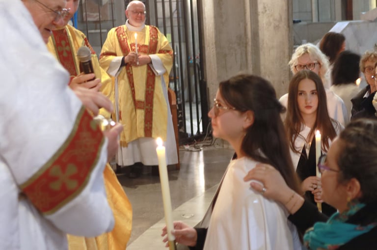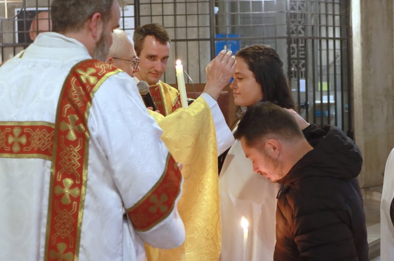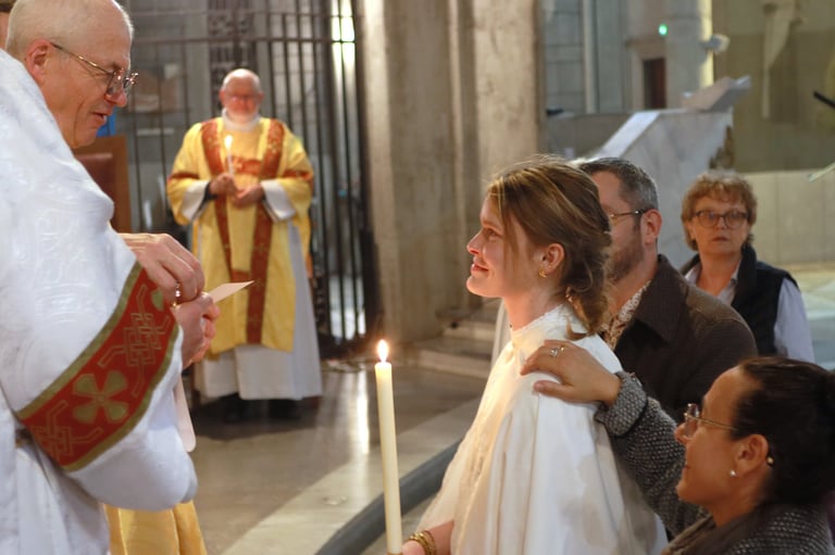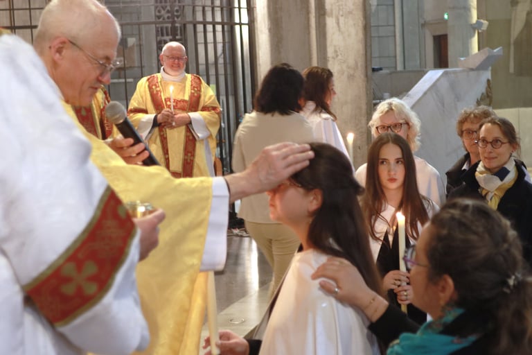 La vigile de Pâques à ND de Victoire a été un moment exceptionnel, marquée par une atmosphère de recueillement et de fête. Chaque année, cette cérémonie revêt une importance particulière pour notre communauté, et cette fois-ci, elle a été encore plus spéciale grâce à l’accueil de 23 adultes et adolescents qui ont reçu les sacrements de l'initiation chrétienne.