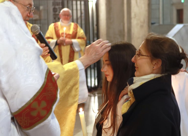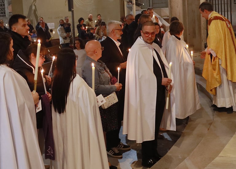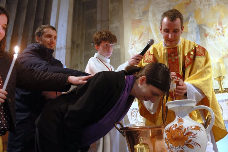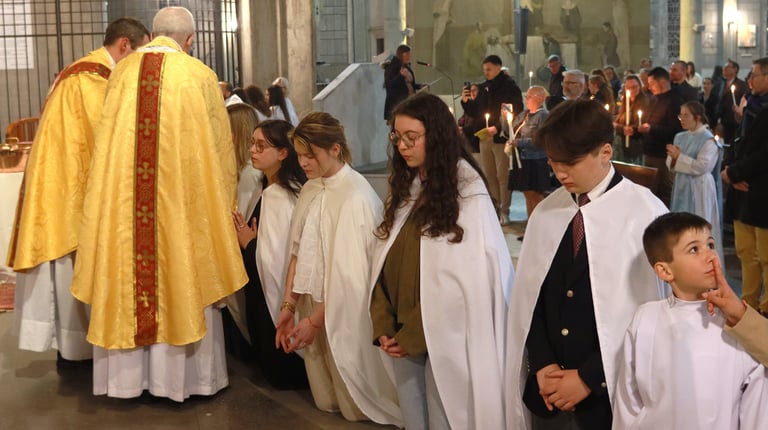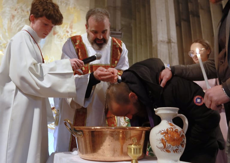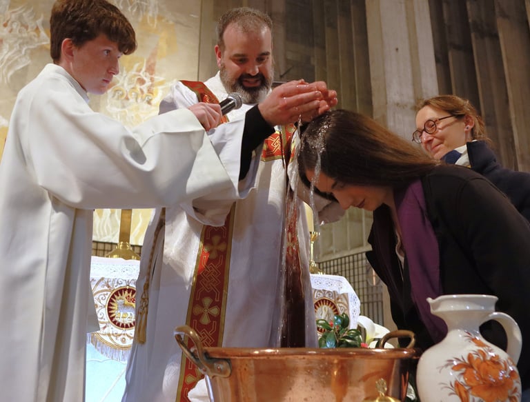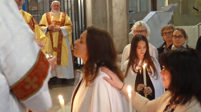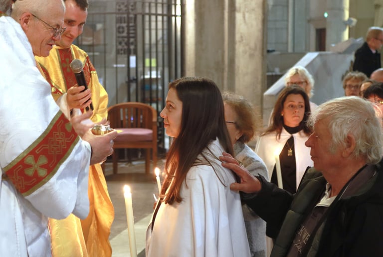 La vigile de Pâques à ND de Victoire a été un moment exceptionnel, marquée par une atmosphère de recueillement et de fête. Chaque année, cette cérémonie revêt une importance particulière pour notre communauté, et cette fois-ci, elle a été encore plus spéciale grâce à l’accueil de 23 adultes et adolescents qui ont reçu les sacrements de l'initiation chrétienne.